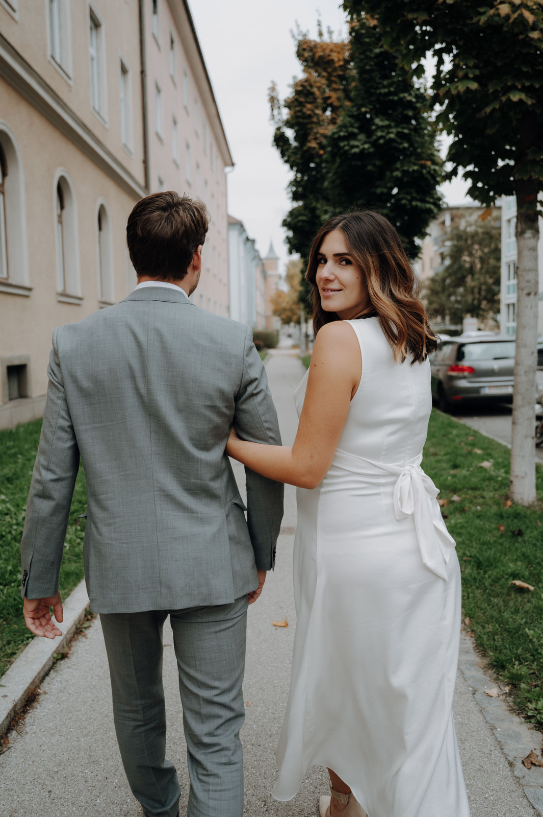 Aber egal, in welchem Standesamt ihr heiratet: Befindet sich dieses in der Stadt, können wir auch hier direkt die Hochzeitsfotos machen. Urban, sehr modern und mit entspanntem Flair – ich bin ein großer Fan von Fotos in der City! Als Hochzeitsfotografin in Klagenfurt nutze ich genau diese urbanen Orte, um eure Geschichte authentisch festzuhalten. Verratet mir gerne eure Lieblingsorte in der Stadt, wo ihr heiratet. Vielleicht gefällt euch eine bestimmte Gasse, eine besondere Hausfassade oder ihr möchtet Fotos, wie ihr lässig Hand in Hand über den Zebrastreifen spaziert? Gemeinsam machen wir eure Wünsche möglich, ich freue mich auf euch und eure Story!