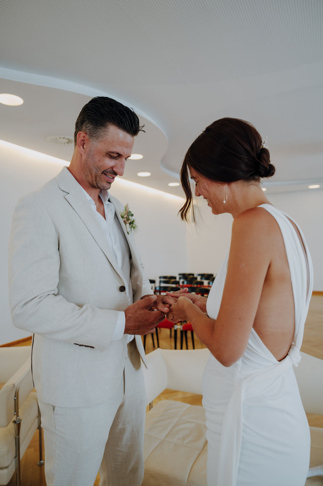 Eine City Wedding in Klagenfurt ist perfekt für Paare, die sich eine persönliche und entspannte Hochzeit wünschen. Immer mehr Paare entscheiden sich für eine kleine Hochzeit im Standesamt, zum Beispiel in Klagenfurt, bei der nur die Trauzeug:innen dabei sind. Als Hochzeitsfotografin in Kärnten begleite ich diese intimen Hochzeiten besonders gerne, weil sie voller echter Emotionen und ungestellter Momente sind. Und glaub mir, auch bei einem Standesamt mitten in der Stadt entstehen tolle Bilder.
